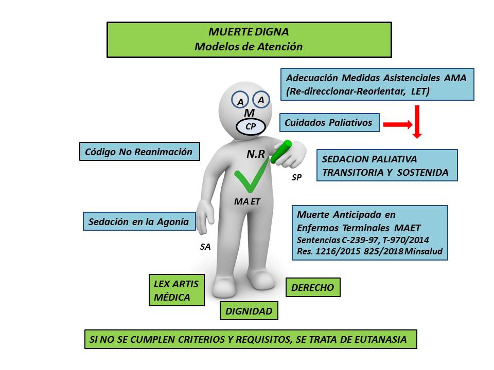 Paradigma de atención originado en los años sesenta del siglo XX en los Estados Unidos a partir de la estructuración del concepto “muerte cerebral” y el caso de Karen Quinlan. Actualmente, su fundamento es la Dignidad, exige requisitos y criterios específicos, y servicios concordantes con la Medicina Científica y el Derecho. Sus modelos de atención son: Adecuación de Medidas Asistenciales AMA (limitación, reorientación o re-direccionamiento de objetivos de manejo), No Reanimación Cardiopulmonar, Sedación Paliativa (Transitoria, Sostenida y en la Agonia), Muerte Anticipada en Enfermos Terminales (Eutanasia regulada y condicionada).